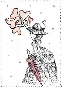 and animation, and she strives for the whimsical in rich, unique details of dots and lines. Her work is mainly